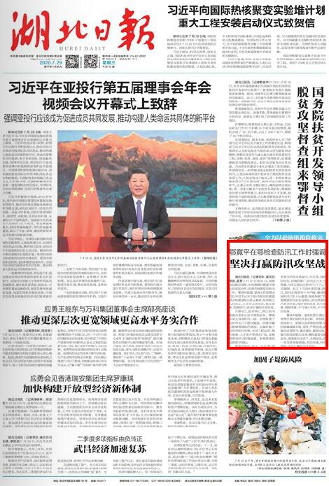 【湖北日报】鄂竟平在鄂强调坚决打赢防汛攻坚战