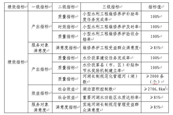 水利工程维修管护、河湖长制补助和农业水价综合改革绩效目标一览表