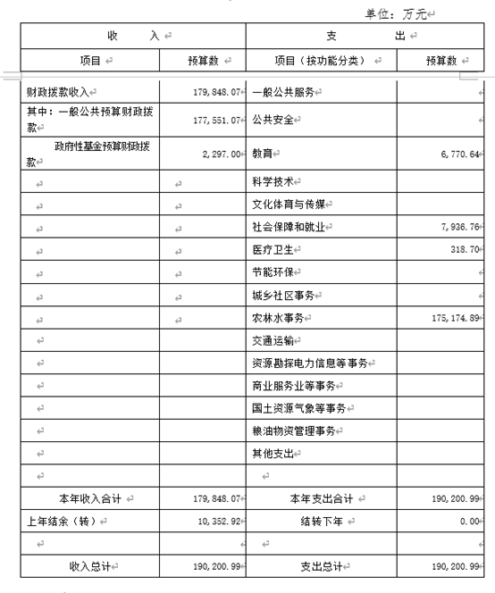 一、湖北省水利厅2020年收支预算总表