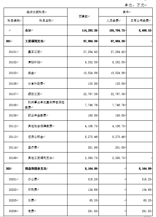 2020年省水利厅一般公共财政拨款基本支出预算114293.26万元,包括:人员经费105794.73万元,日常公用8498.53万元。其中:商品服务支出8164.89万元;工资福利支出97984.59万元;对个人和家庭的补助支出7810.14万元;资本性支出333.64万元。主要用于保障机构正常运转、完成日常工作任务而发生的人员支出和公用支出。